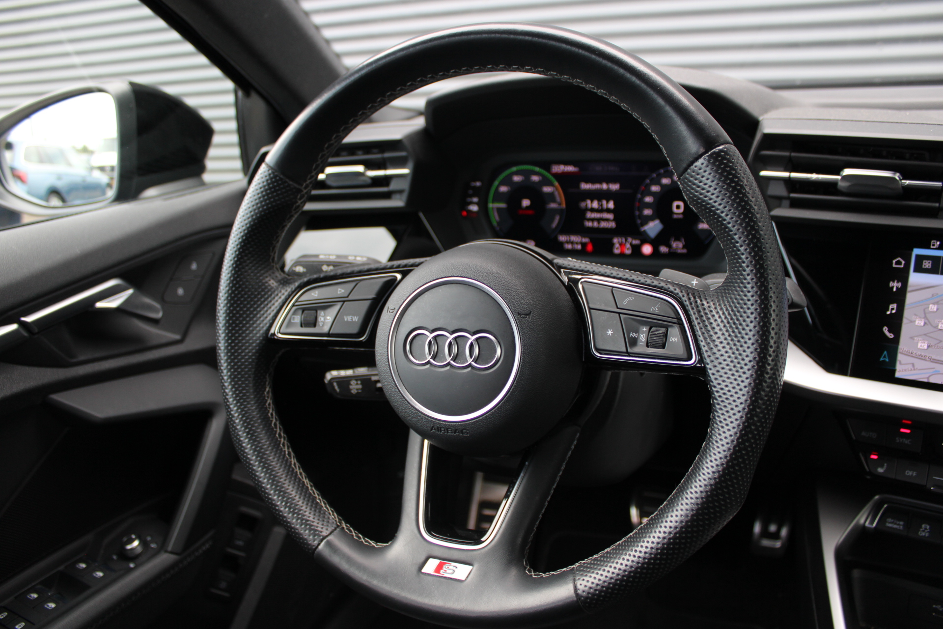 • Sportstuurwiel, multifunctioneel in leder, driespaaks met schakelpaddels